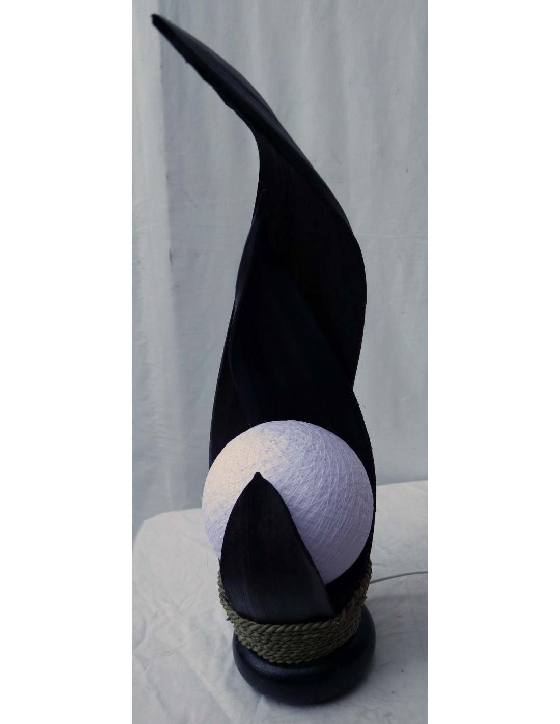 Benvenuto nel nostro negozio online, dove l'arte e la funzionalità si fondono nella bellezza delle nostre lampade abat-jour in foglie di cocco marrone con palla di cotone a sfera bianca, un capolavoro dell'artigianato indonesiano.