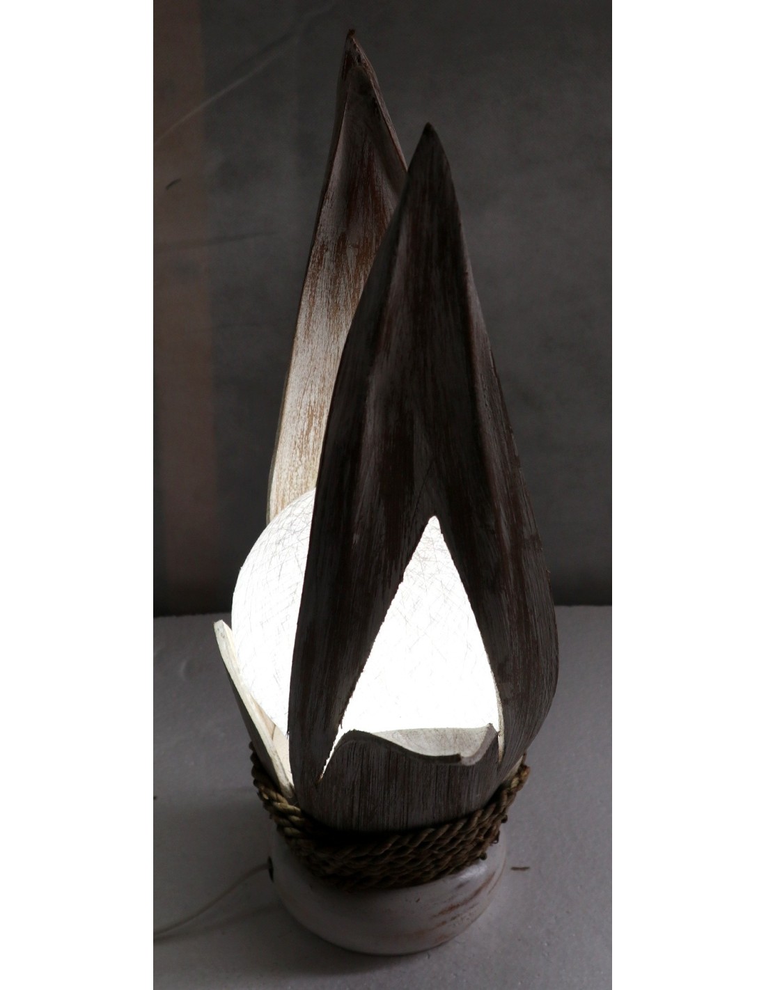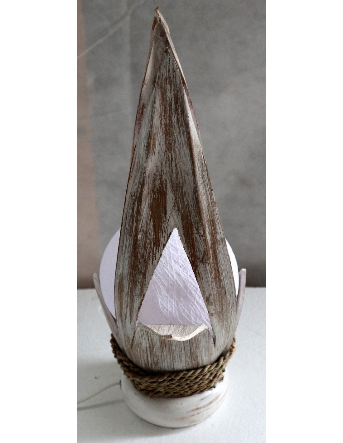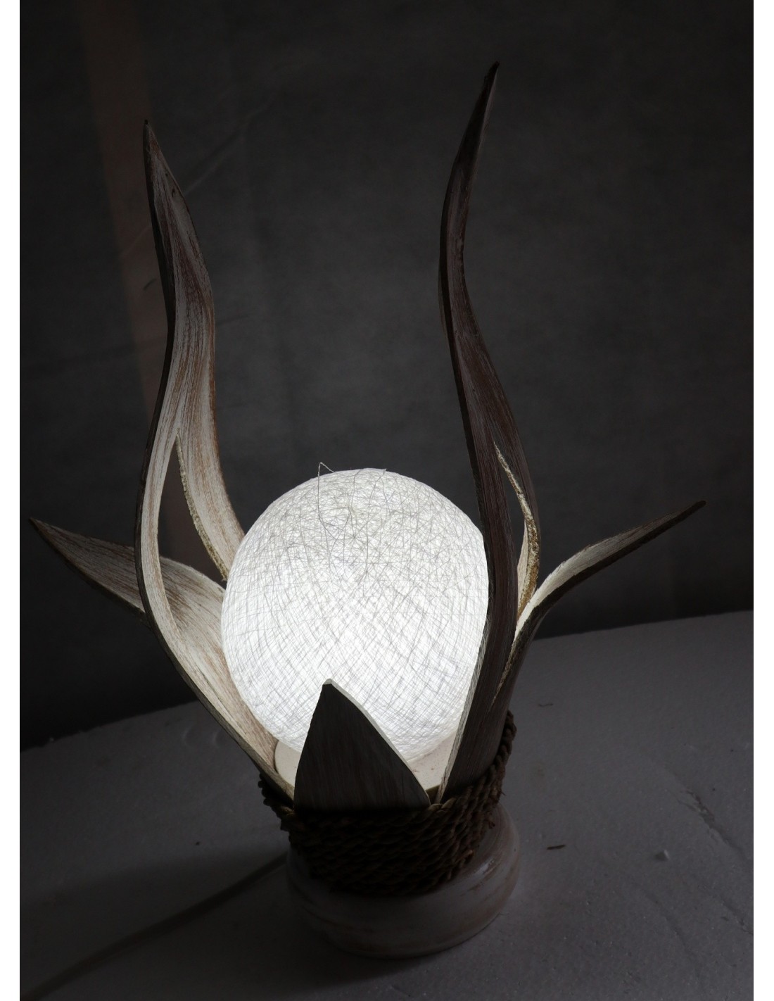 Lampada Abat-jour in Cocco con Sfera di Cotone Bianca – 10x18x40h