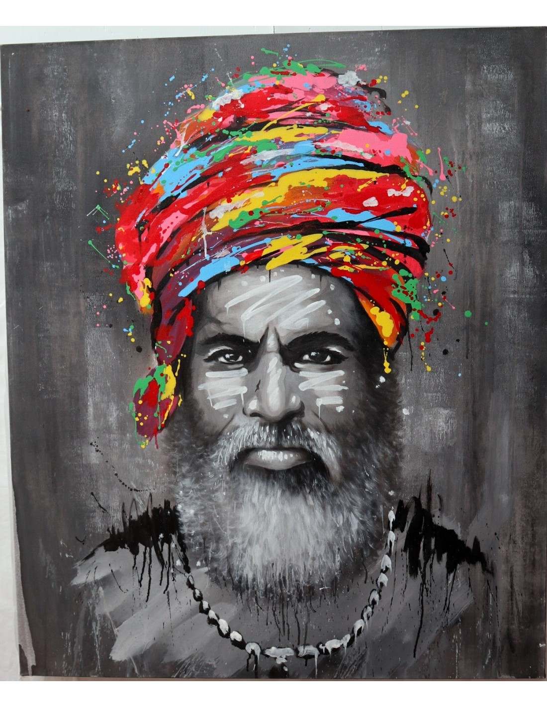 Non ci sono più articoli nel tuo carrelloQuadro dipinto pop art vecchio saggio Indiano cm120x100 africana tribale moderno industrial tela grigio