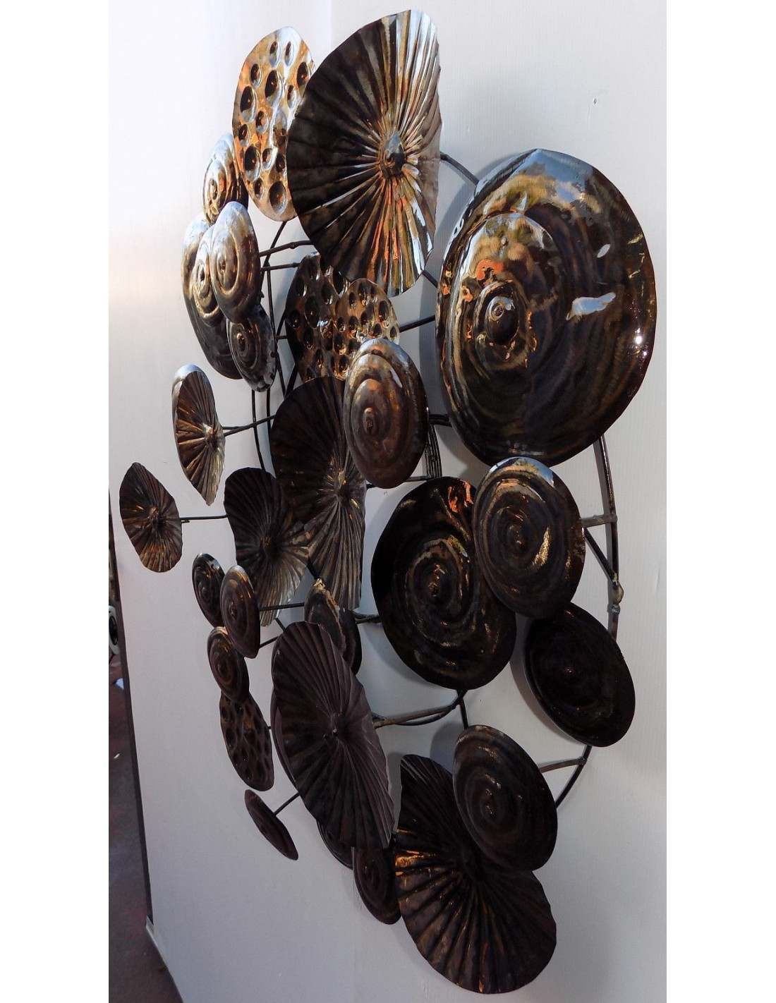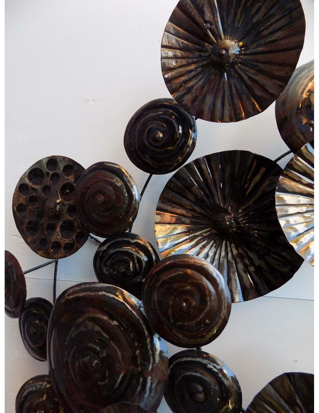 Quadro in ferro metallo funghi cm 76x84x10 pannello brunito decorazione muro opera d'arte