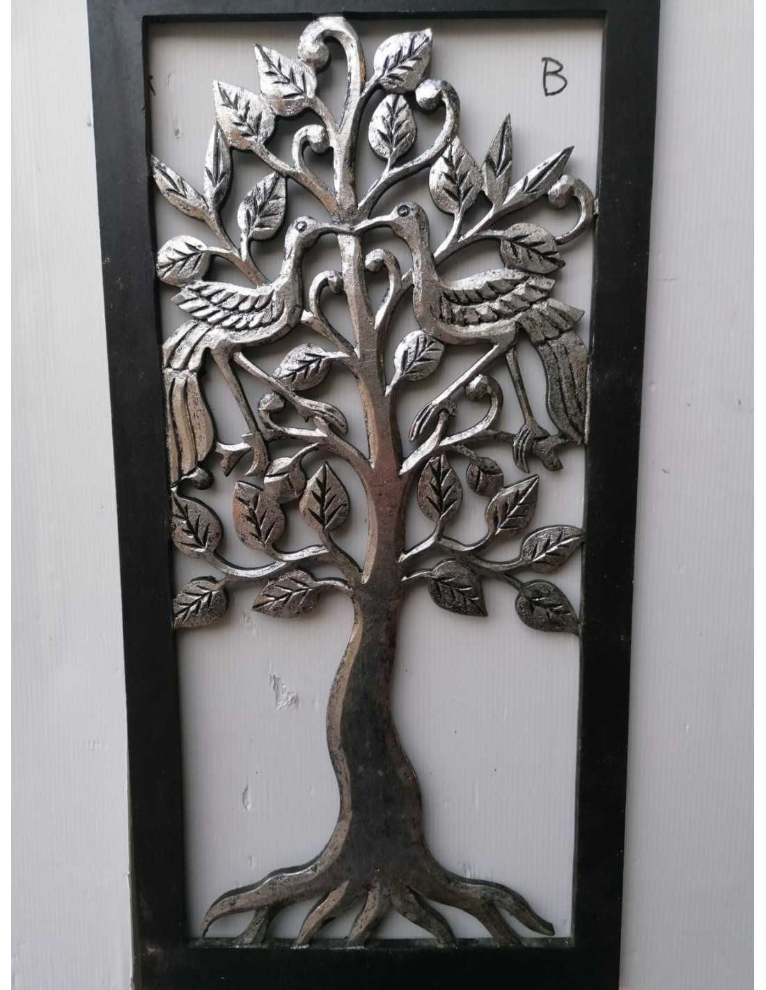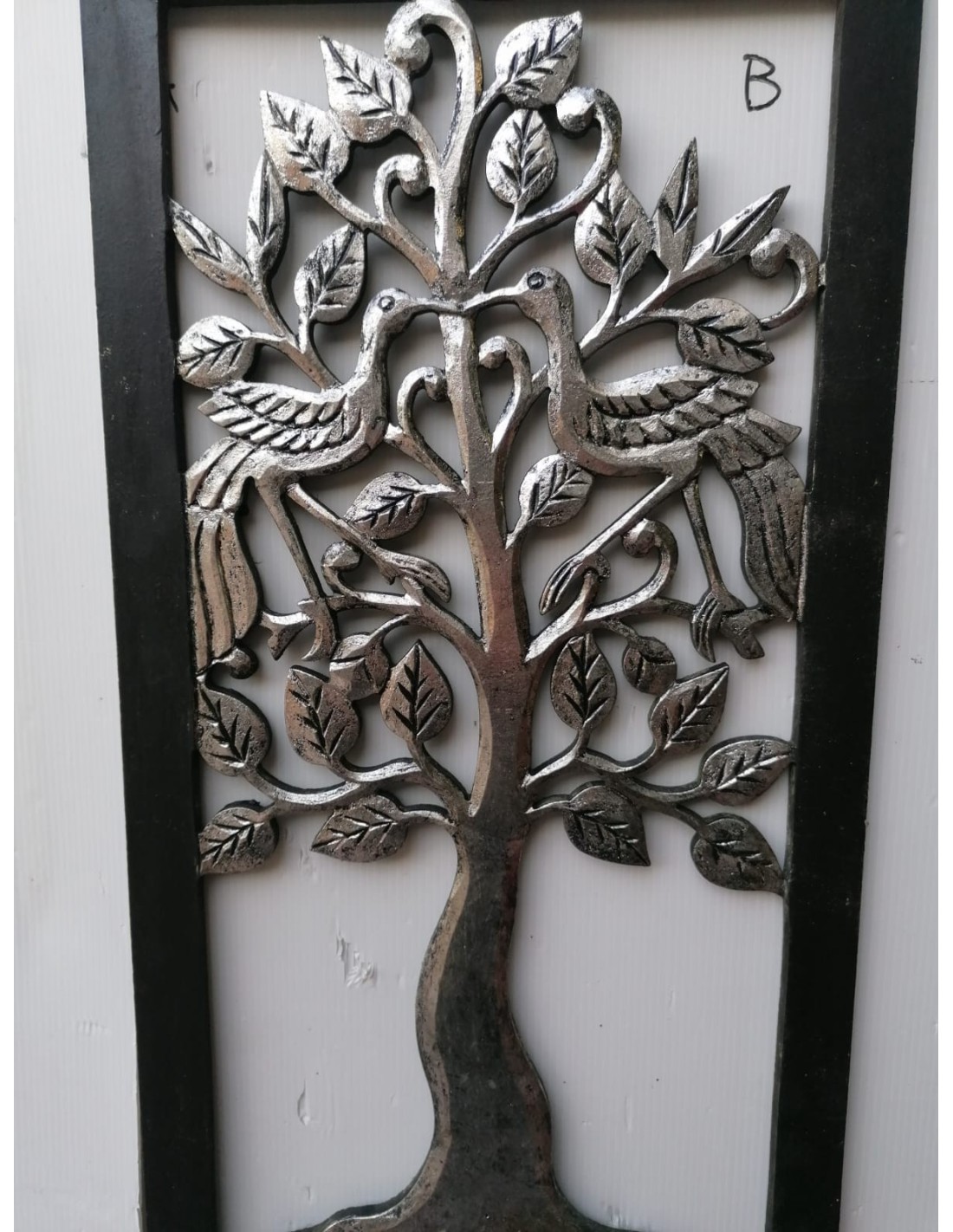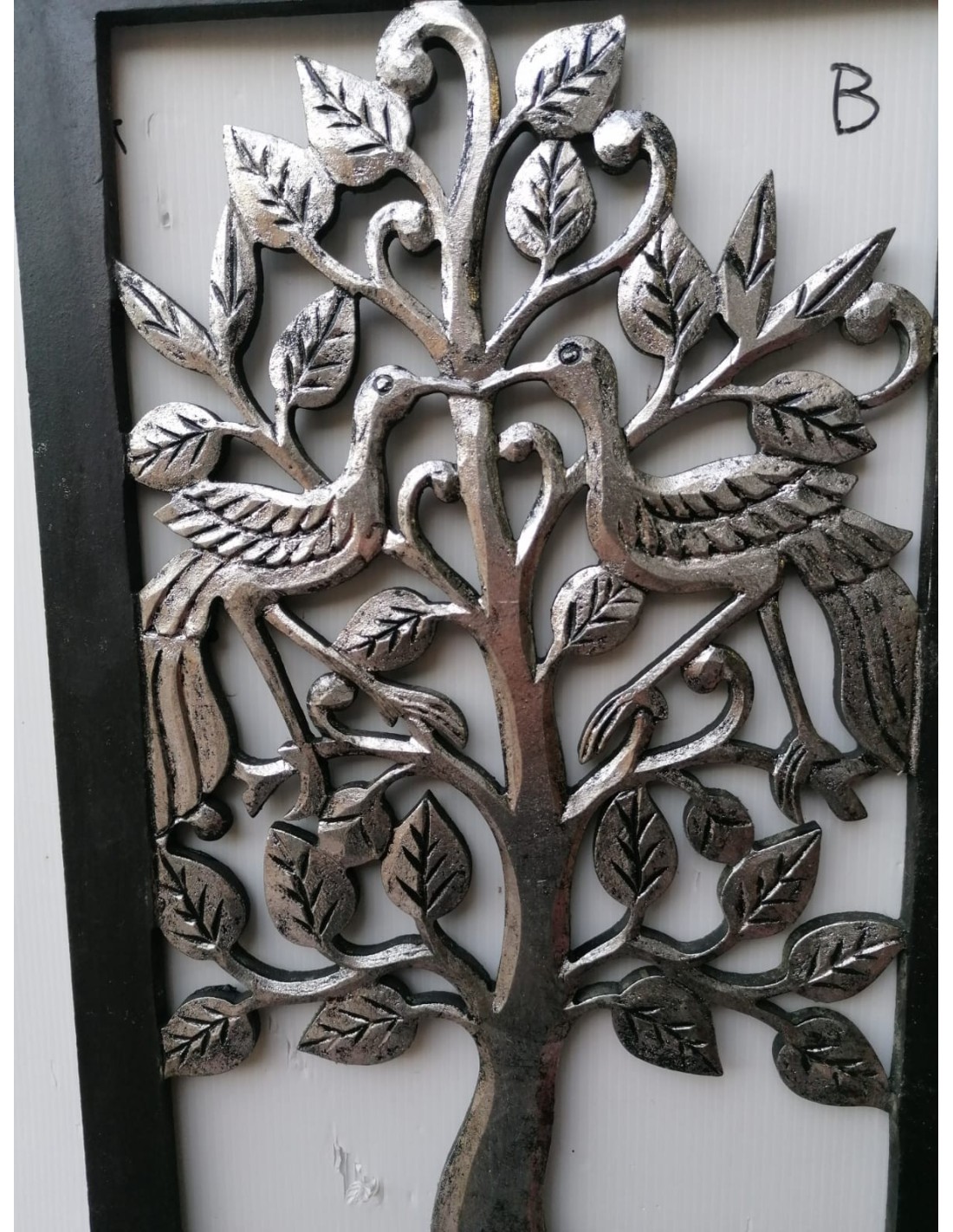 Pannello albero della vita in legno mdf traforato cm 60x30 argento nero