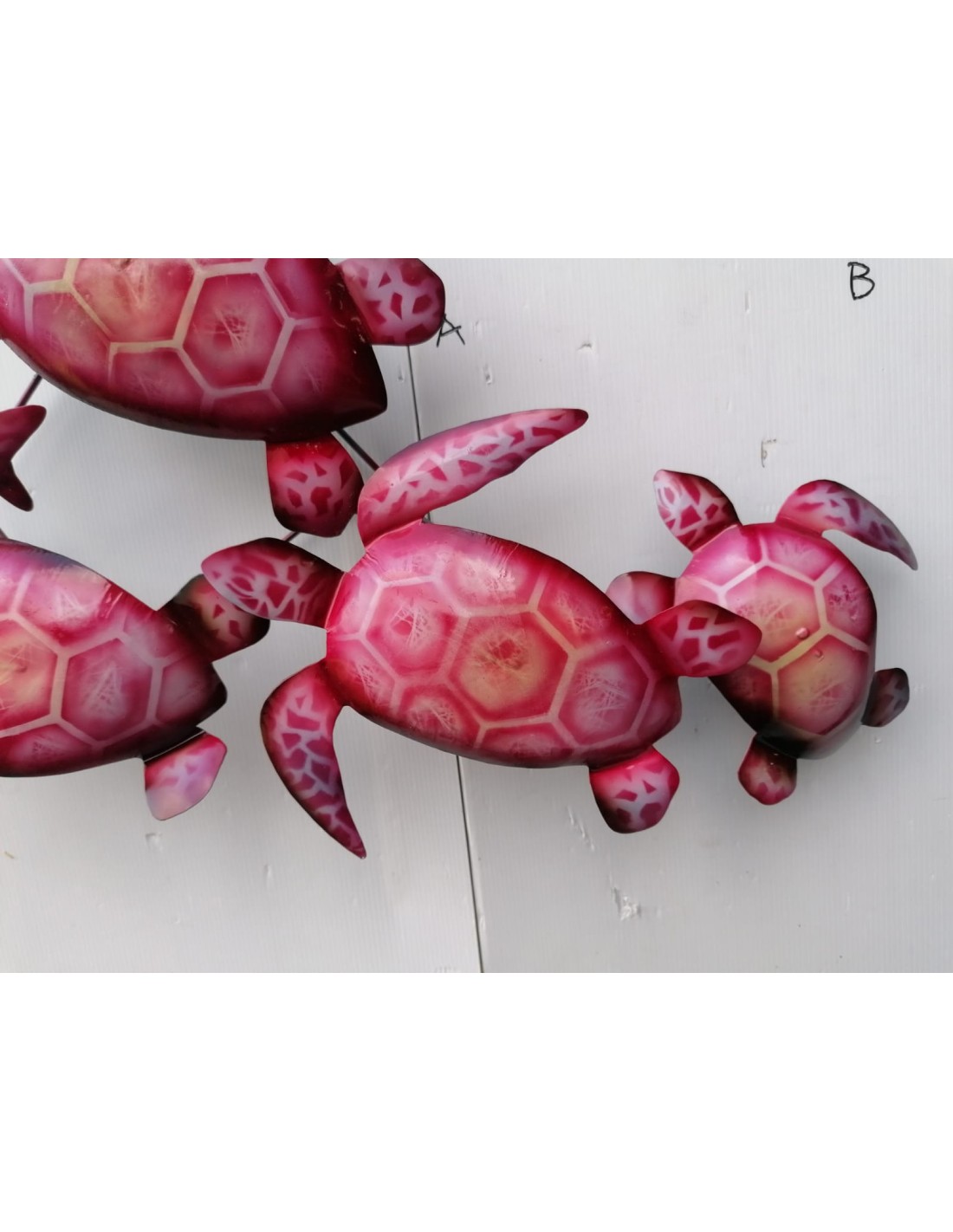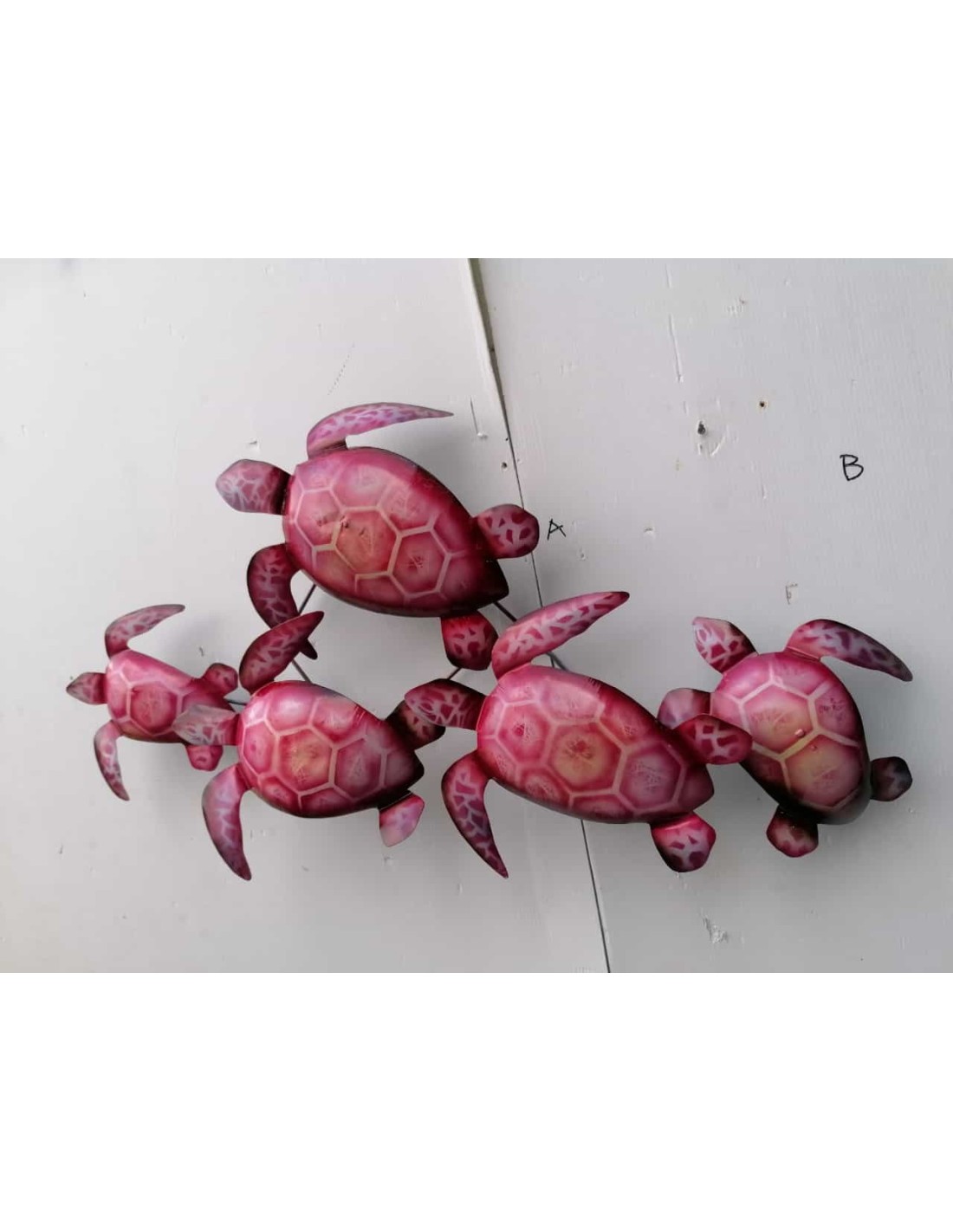 Pannello tartarughe marino in metallo creato e colorato mano cm 76x43x12 marino pesci rosa