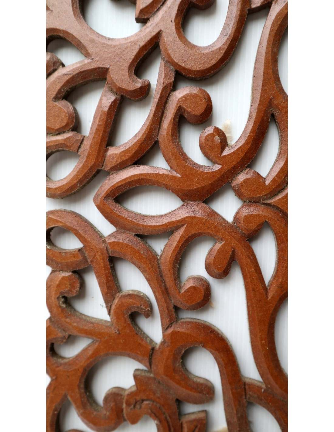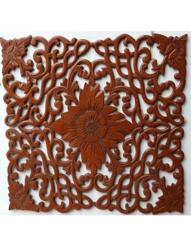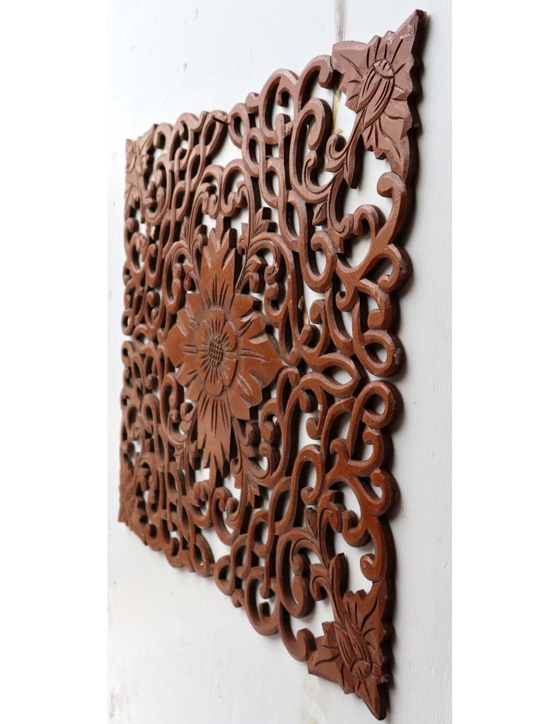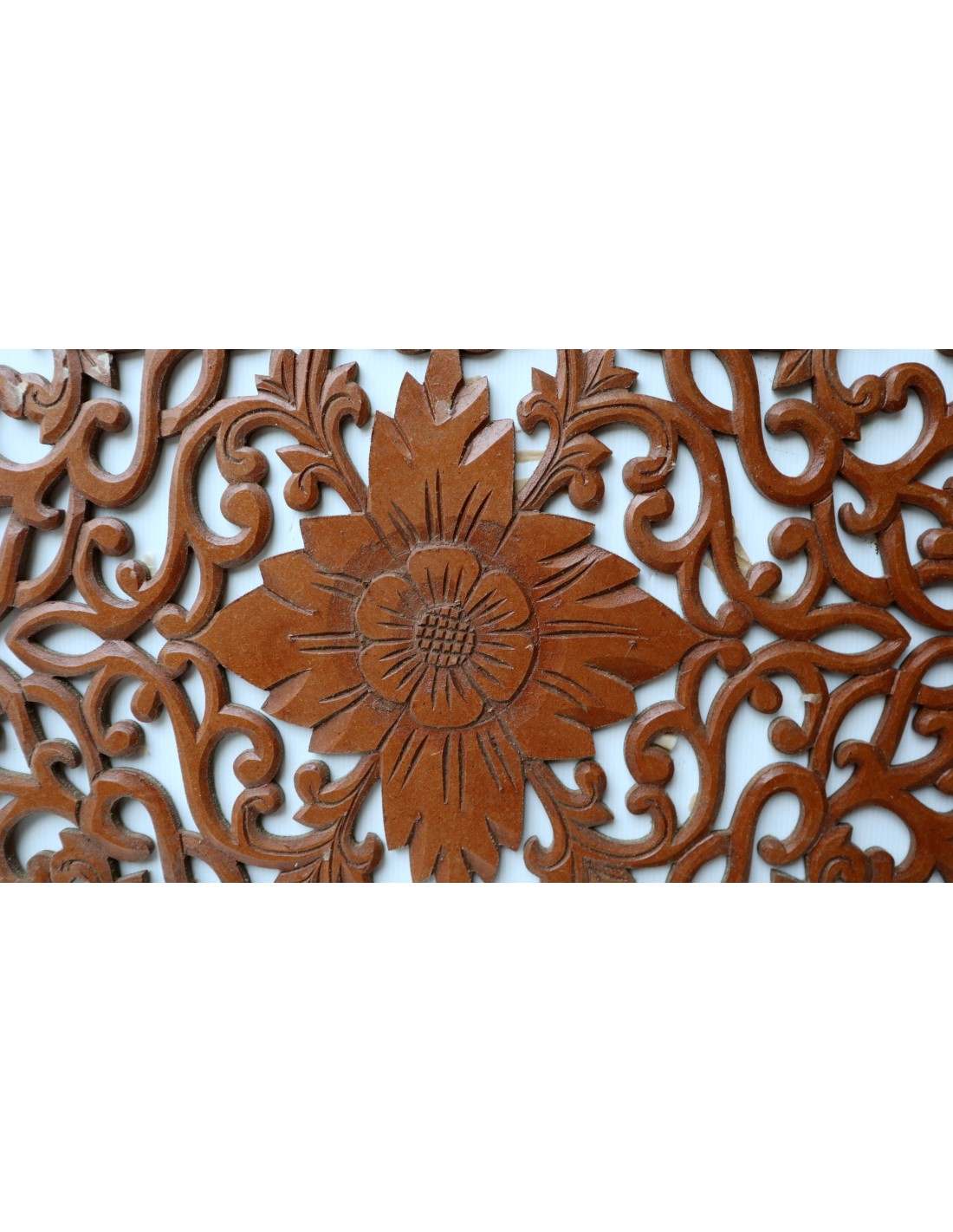 Pannello floreale in legno mdf traforato a mano cm 60x60 marrone naturale quadro dipinto 2