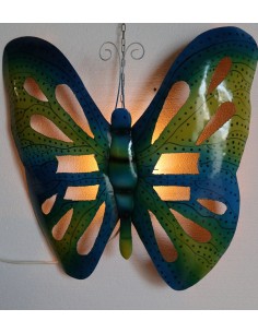 Farfalla decorativa in metallo dipinto sfruttabile come applique blu gialla cm 50