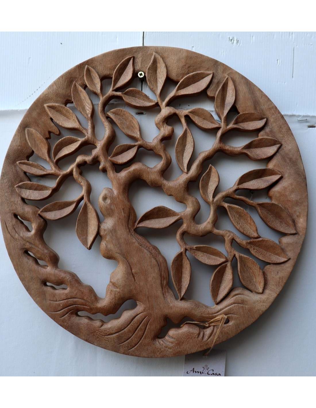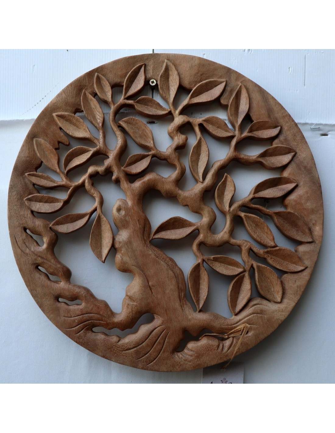 Pannello quadro albero della vita legno suar massello traforato a mano diametro cm 40 naturale olivo
