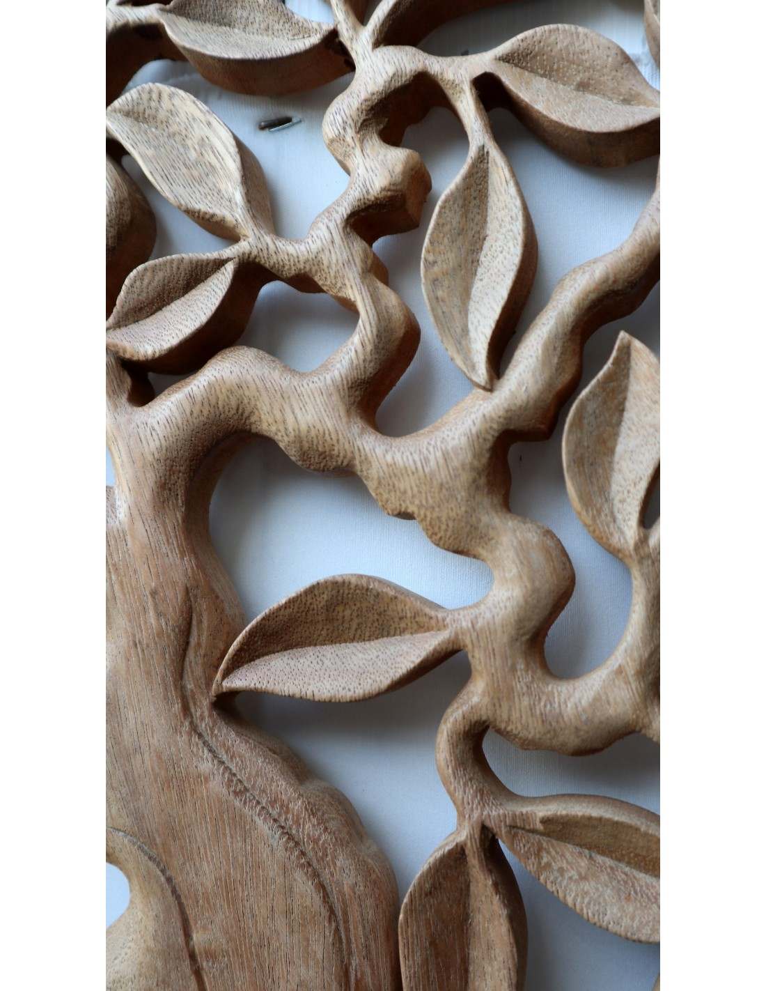 L'artigianato meticoloso emerge attraverso un processo di traforatura a mano, evidenziando la precisione e l'abilità degli artigiani indonesiani. La trama intricata e dettagliata dell'albero della vita crea un effetto visivo mozzafiato, rendendo ogni pannello unico e carico di significato simbolico.