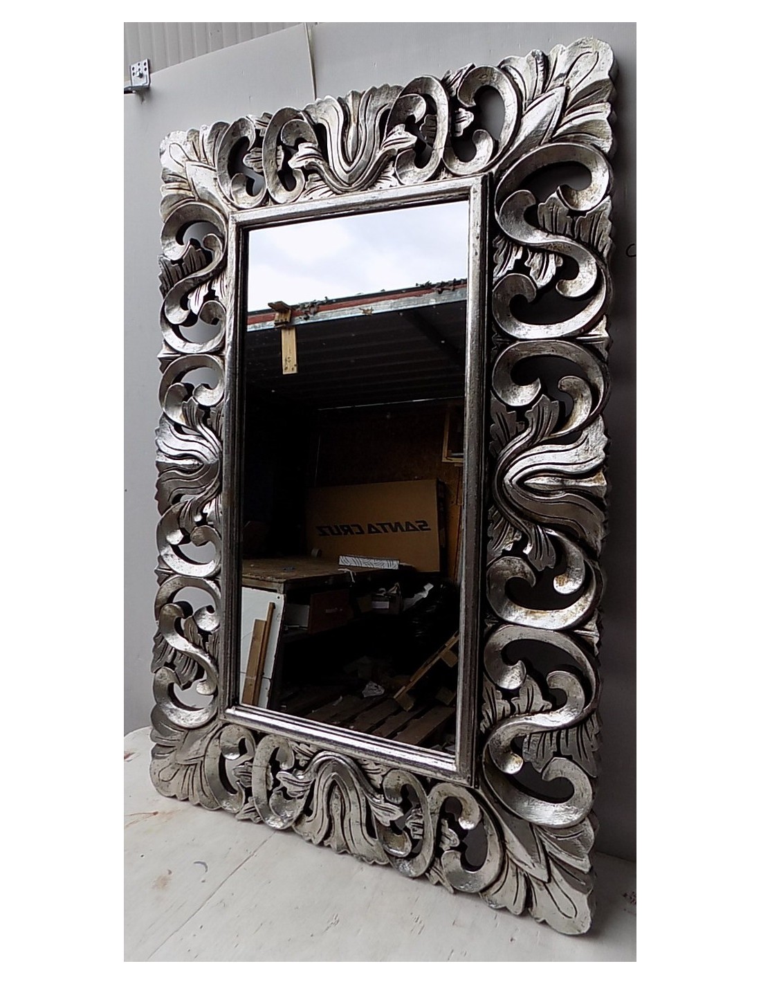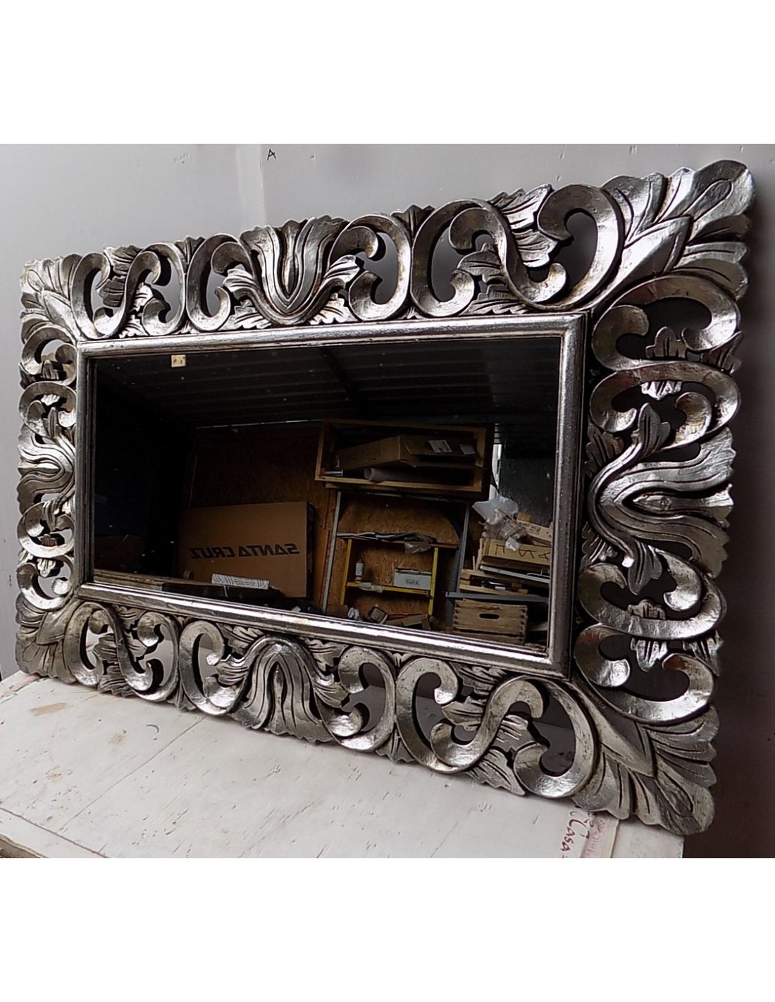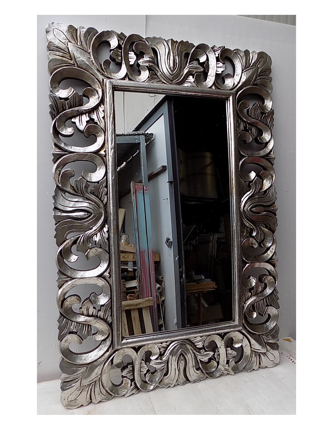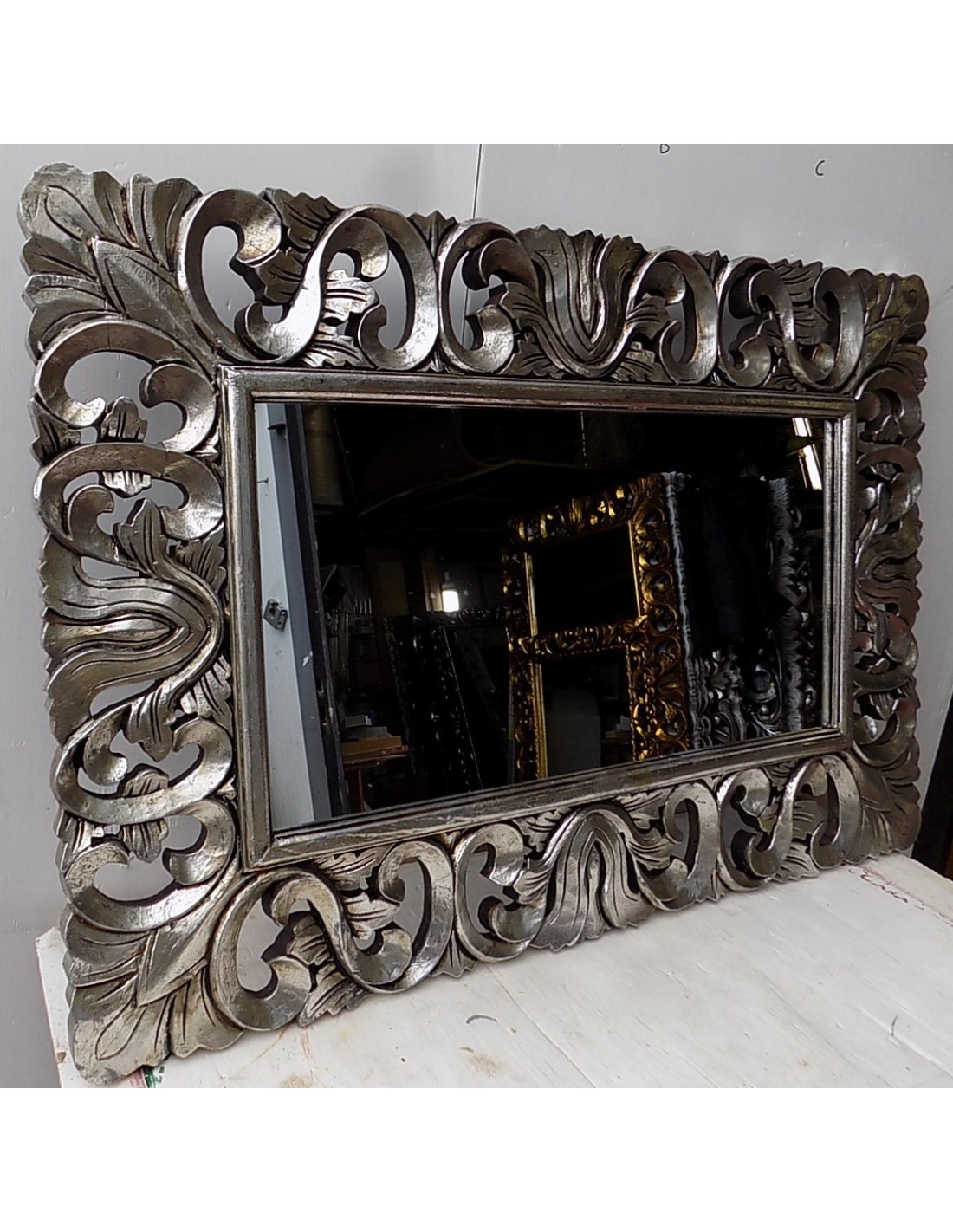 Specchio barocco in legno intarsiato cm 150x90 argento anticato mod. Valencia
