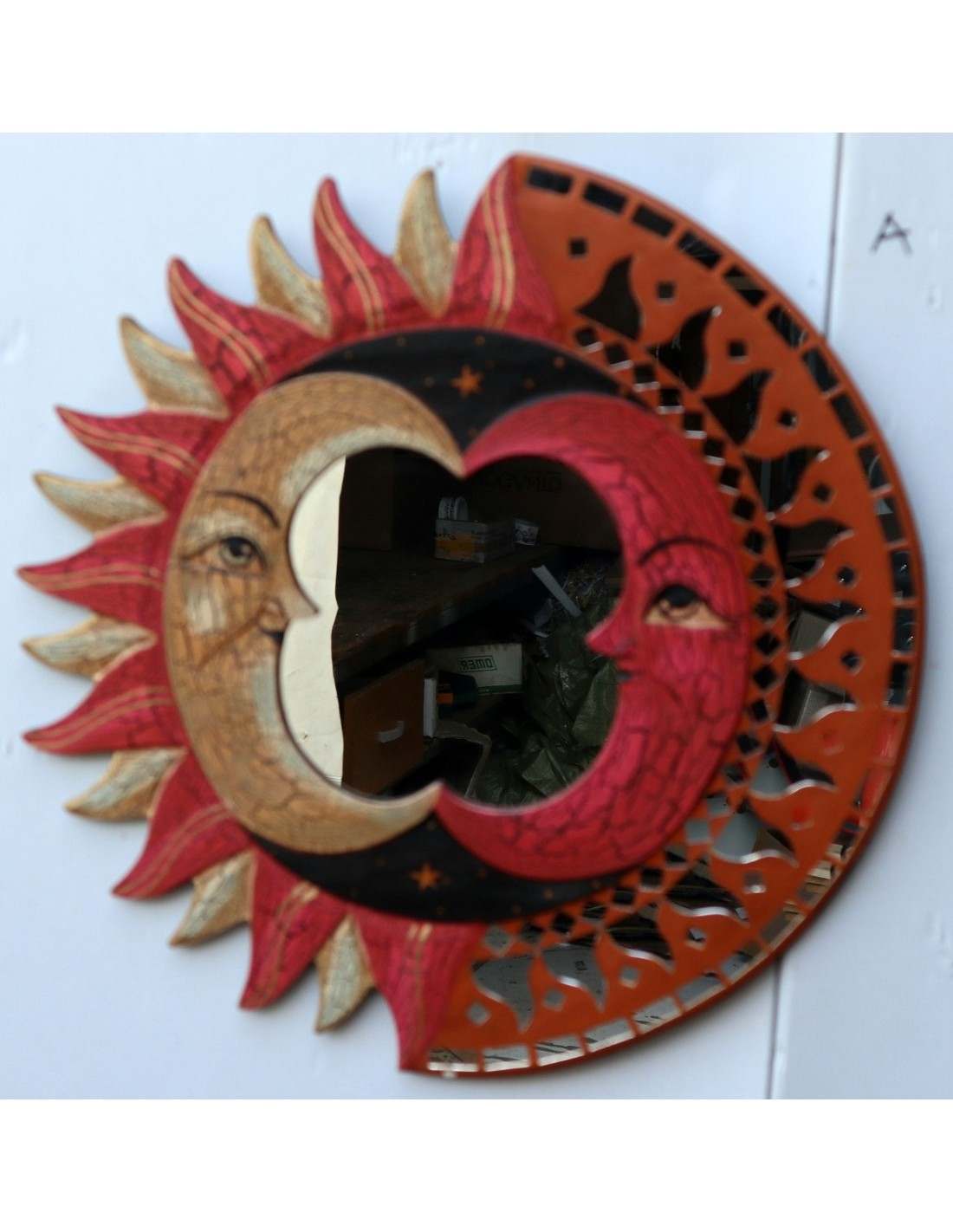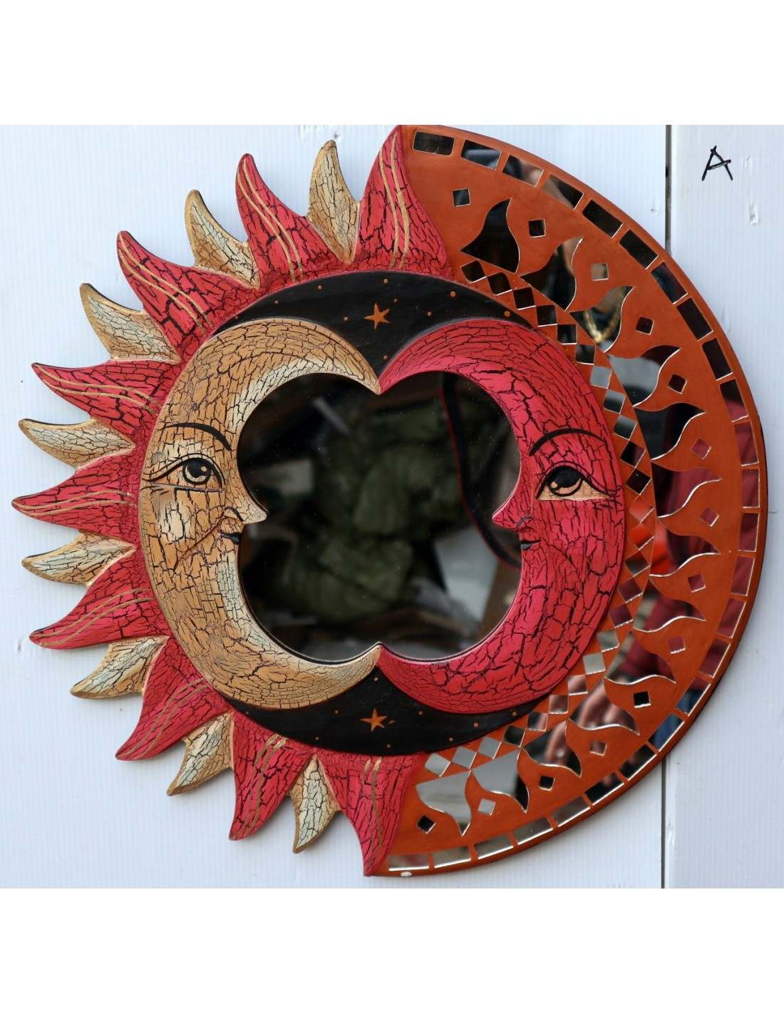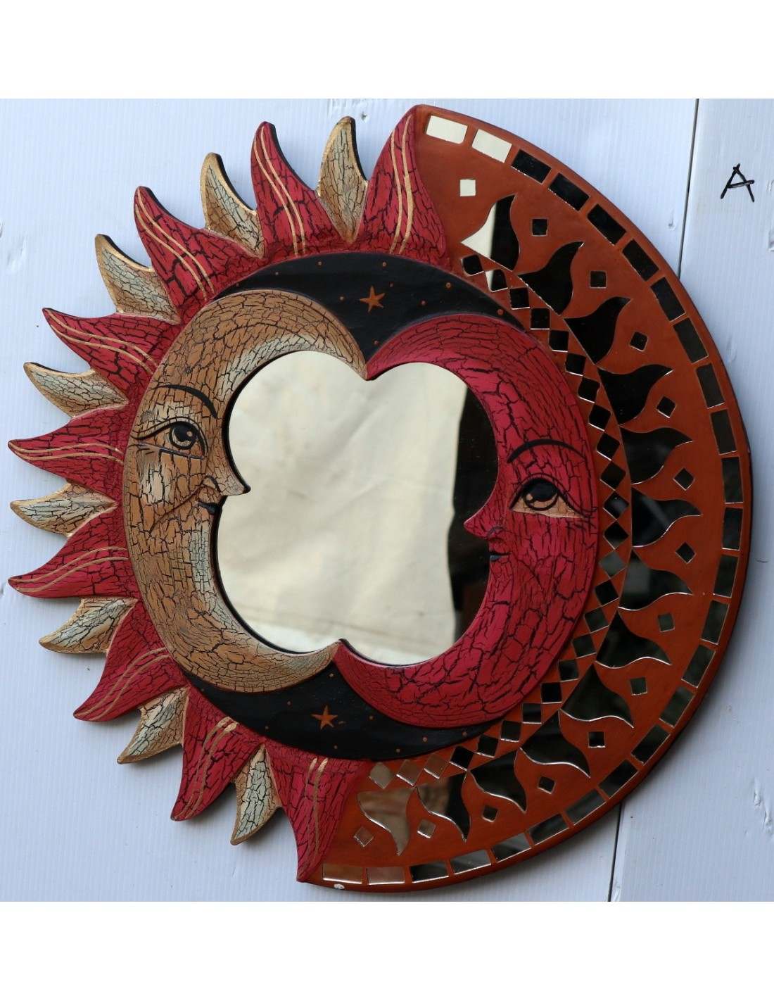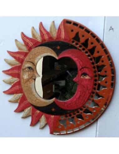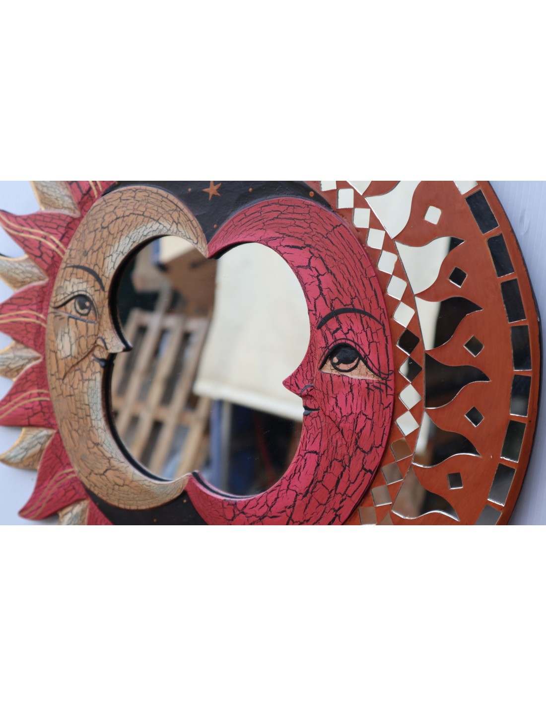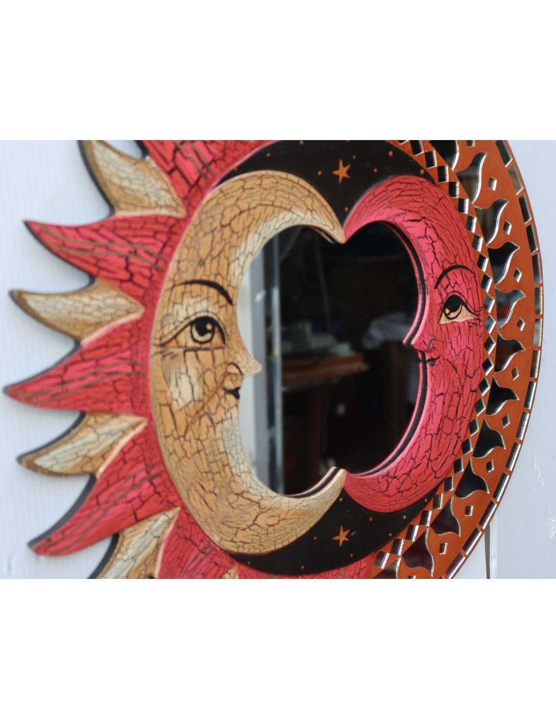 Specchio sole luna rosa beige antico diametro cm 40 con mosaico di vetro sole/luna