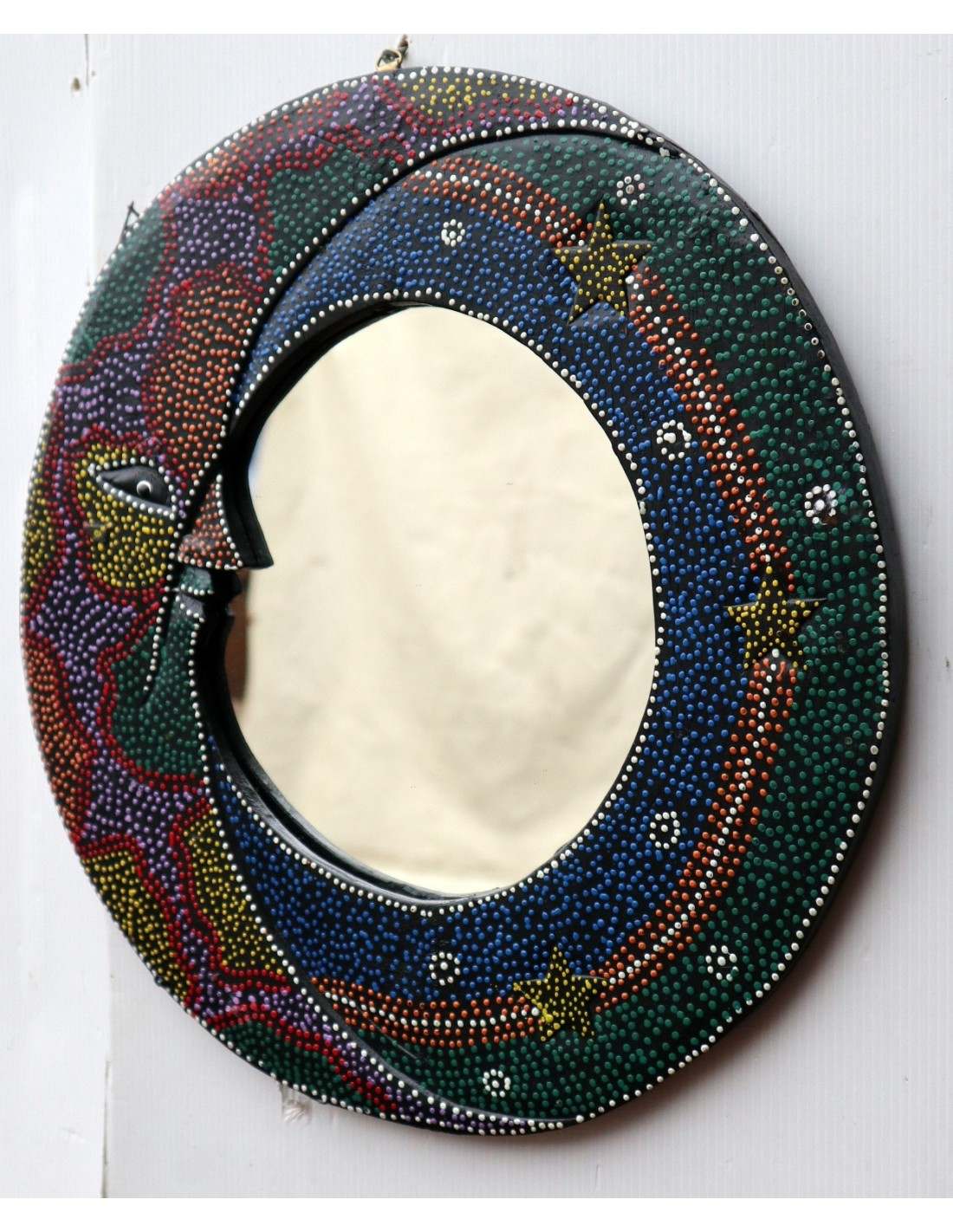Specchio Luna diametro cm 38 aborigeno sole/luna sole in legno mdf