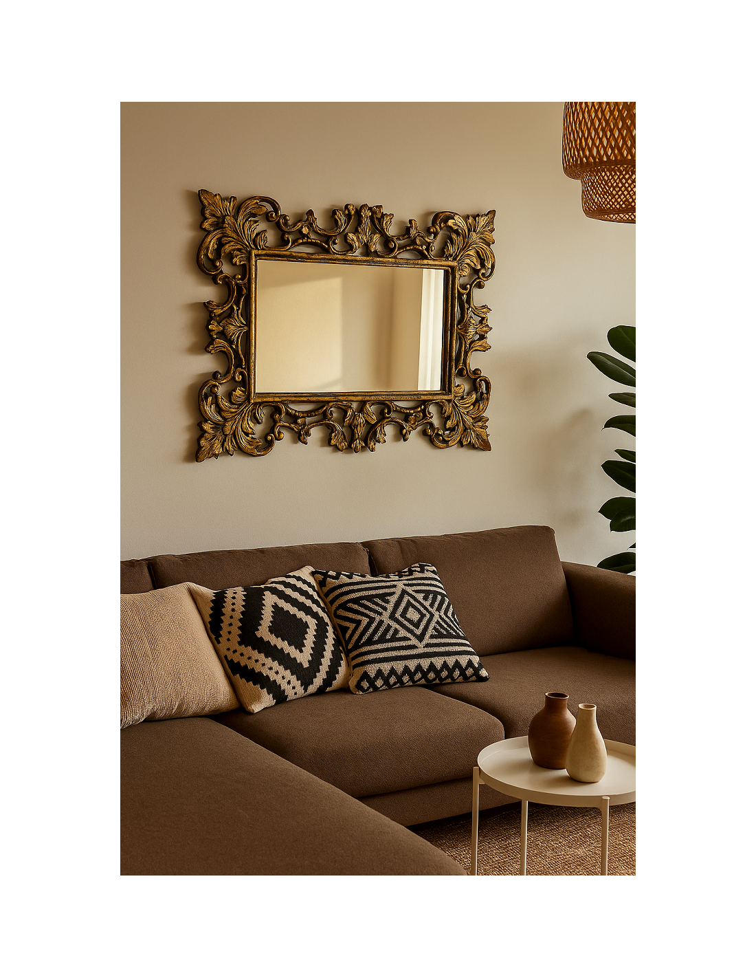 Perfetto per arricchire un salotto moderno, un ingresso elegante o una camera da letto dallo stile caldo e accogliente, questo specchio unisce la raffinatezza del design antico con la funzionalità contemporanea.
