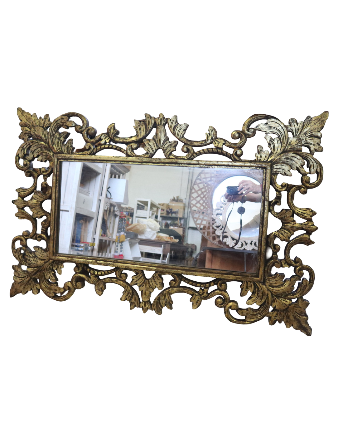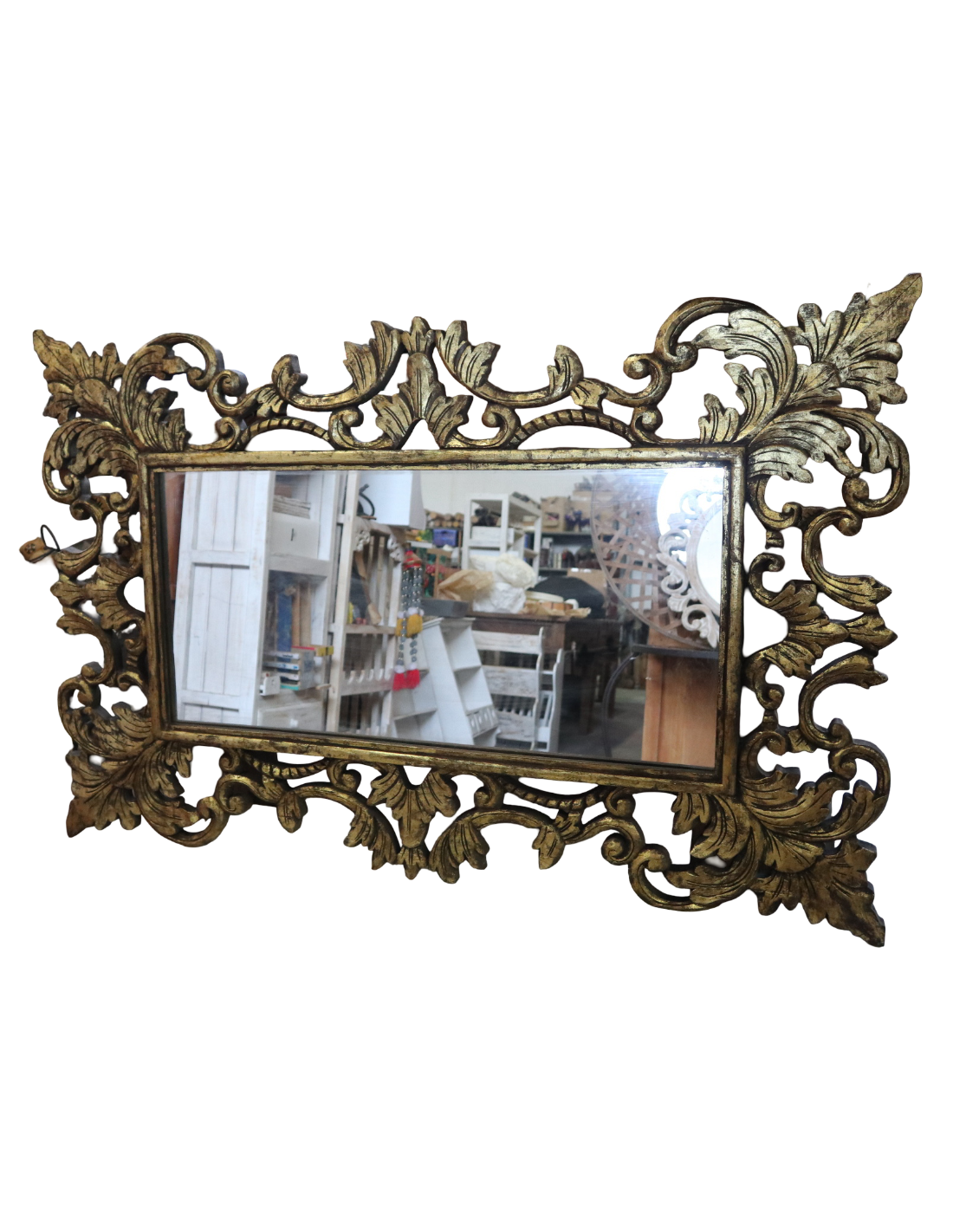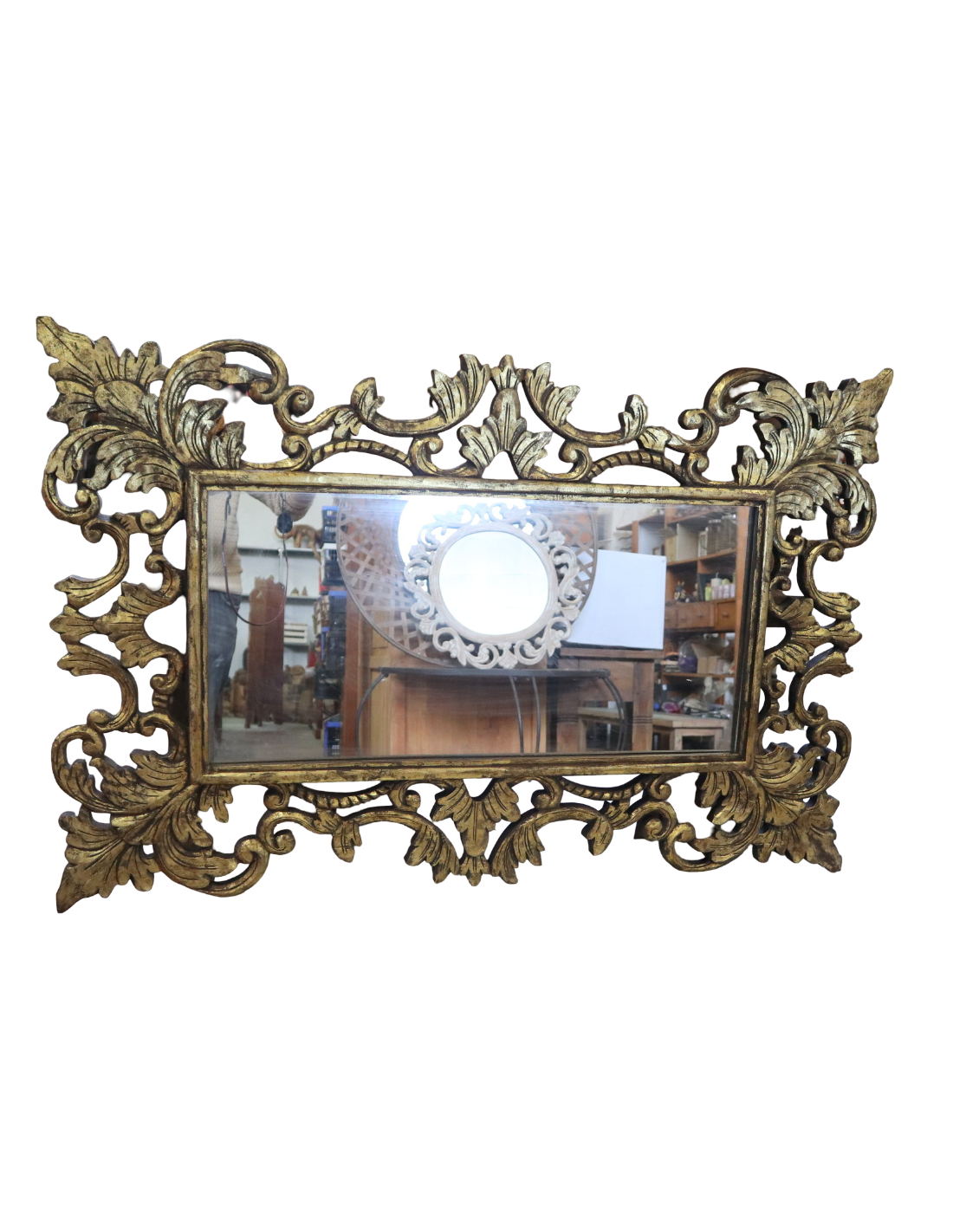 Specchio Oro Antico in Legno Massello Durian 120x80 cm – Cornice Intagliata a Mano 20 cm