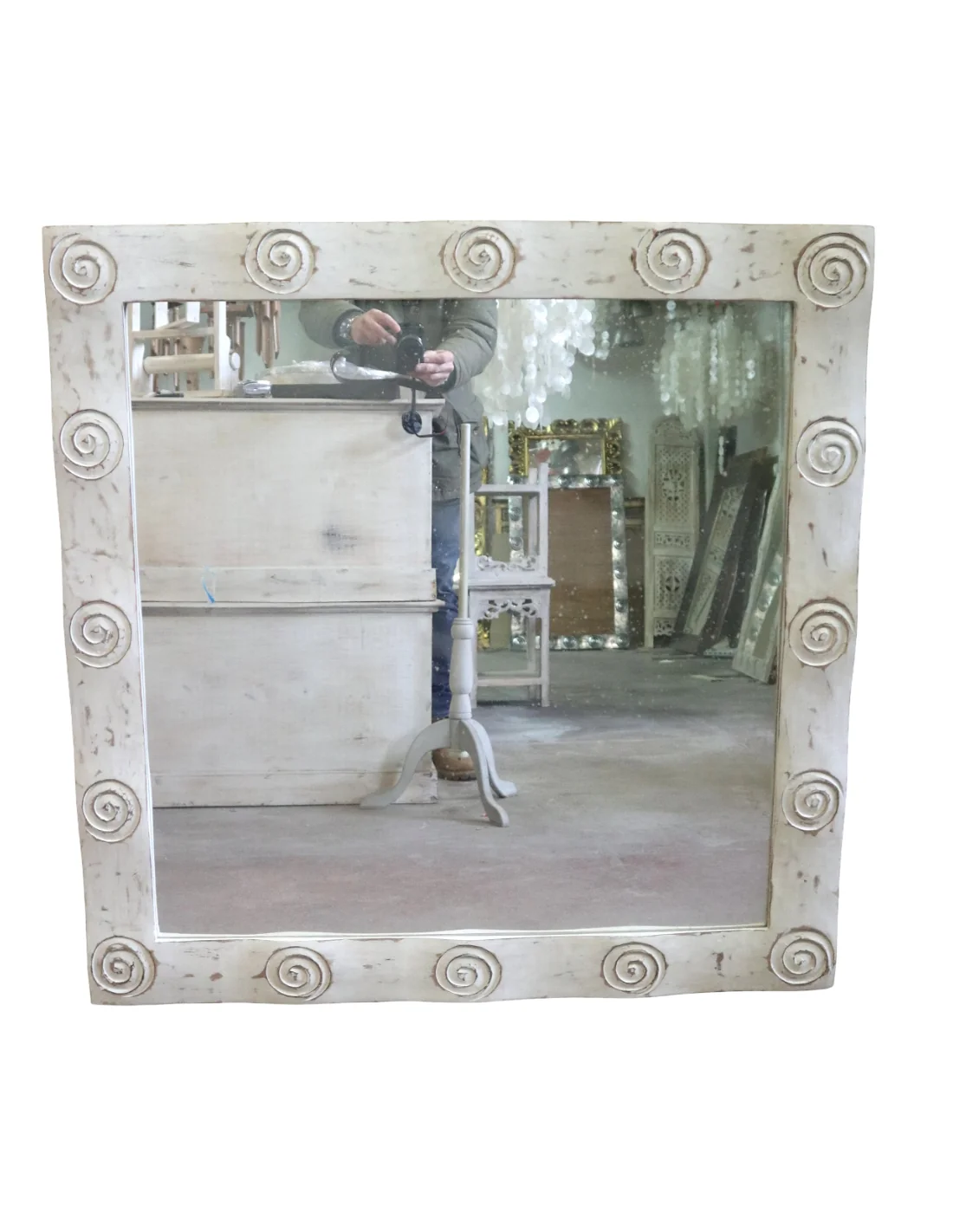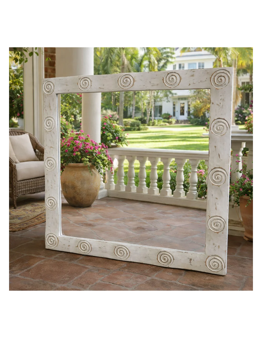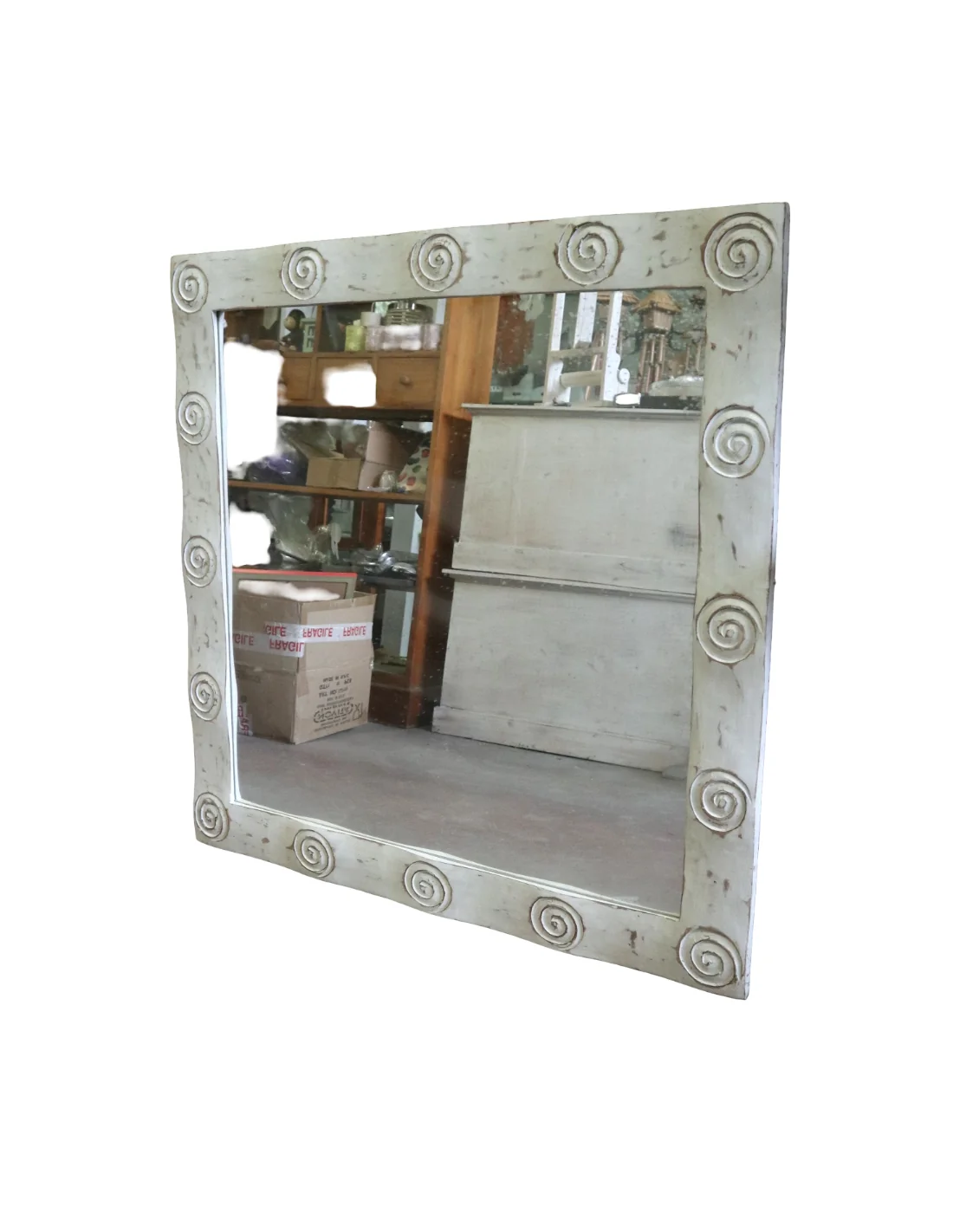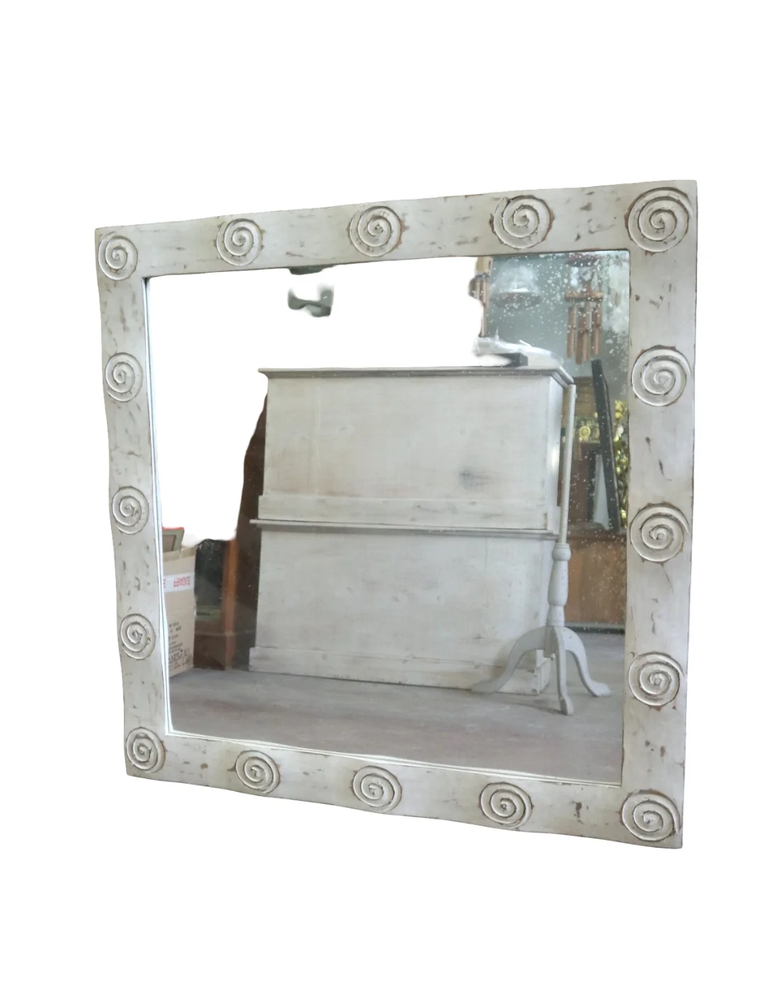 Specchio Artigianale Spirali Bali 100x100 cm – Cornice Intagliata in Legno di Durian – Fatto a Mano in Indonesia