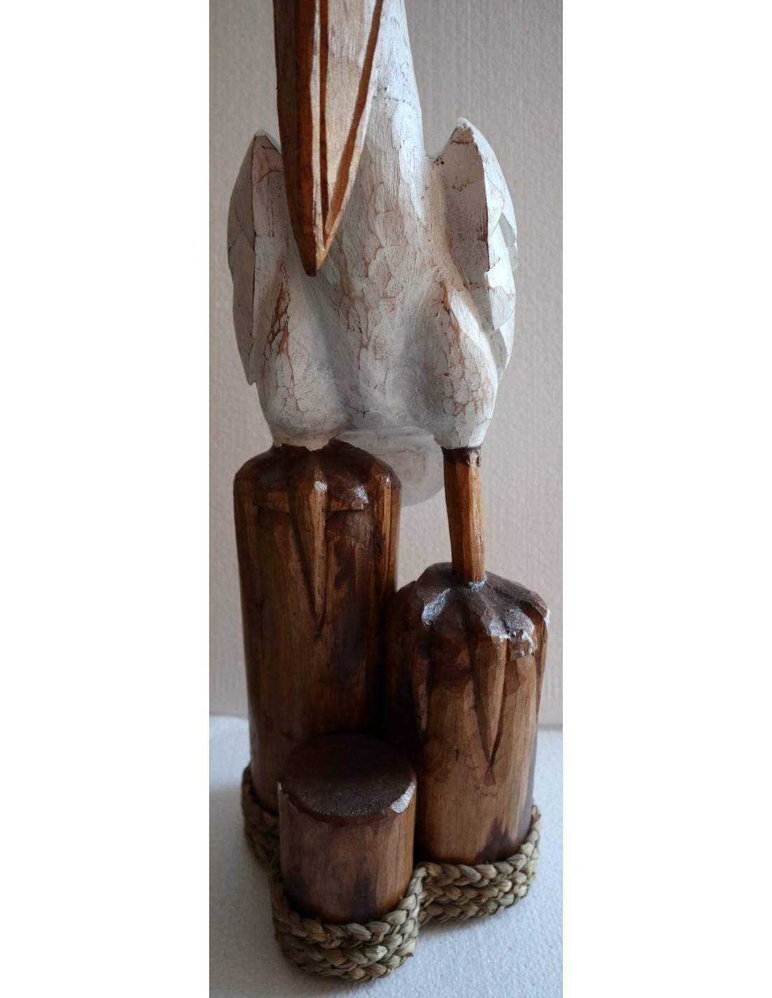 Scultura di un Pellicano in legno da cm 25x20x82h bianco r marrone mare dipinto