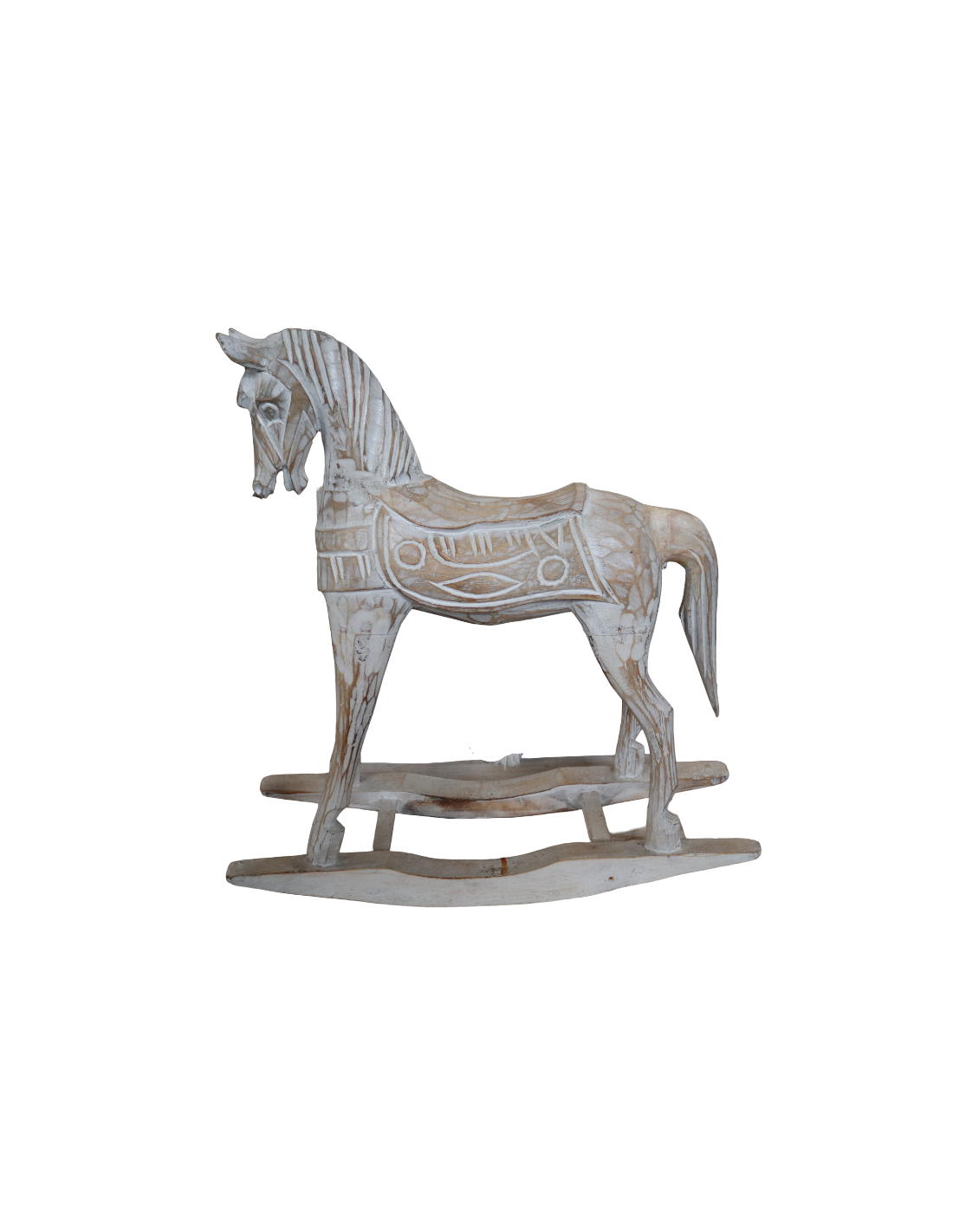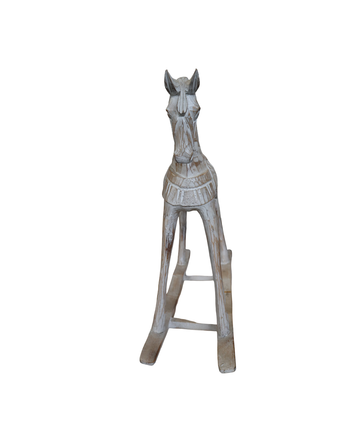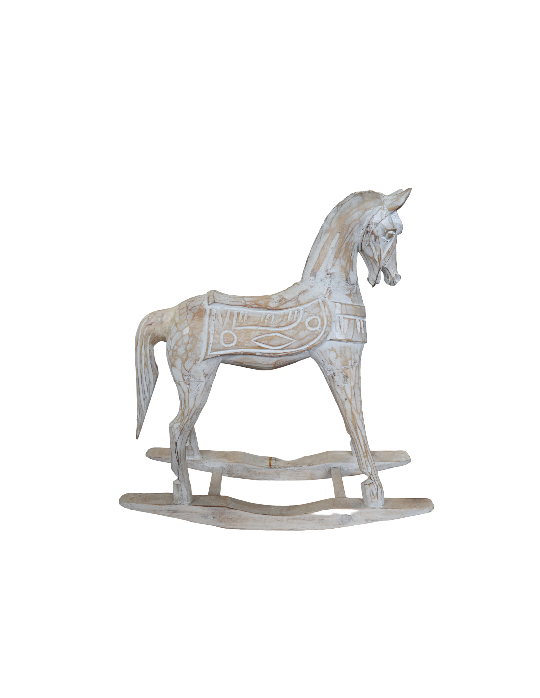 MarblechicDolce e raffinato, questo cavallino a dondolo in legno di albesia è una scultura artigianale realizzata a mano in Indonesia, pensata per arricchire con stile e poesia la tua casa.