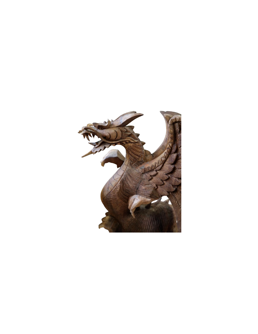 Porta nella tua casa un simbolo di forza, protezione e armonia con questa imponente scultura di drago in legno, realizzata interamente a mano in Indonesia da esperti artigiani.