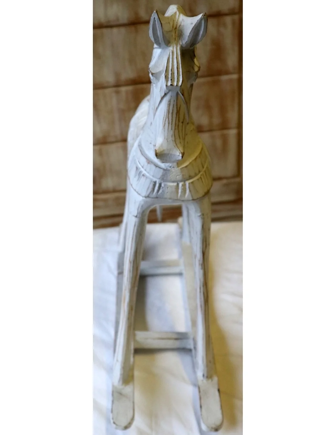 MarblechicDolce e raffinato, questo cavallino a dondolo in legno di albesia è una scultura artigianale realizzata a mano in Indonesia, pensata per arricchire con stile e poesia la tua casa.