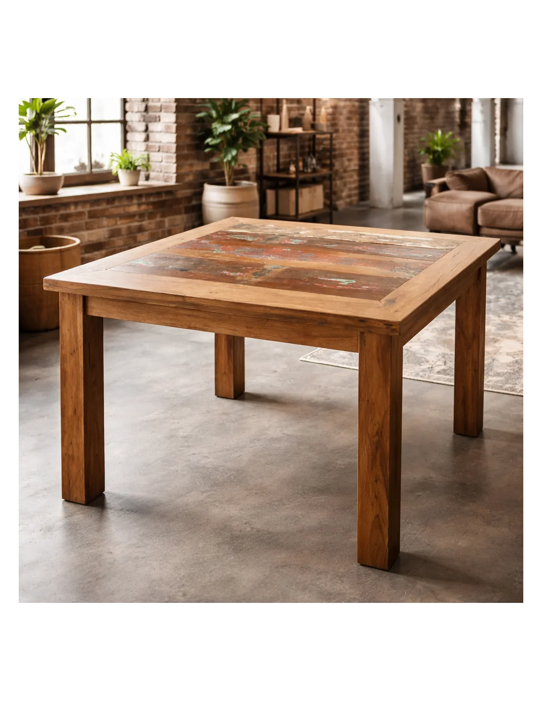 Tavolo Quadrato 100x100 cm in Legno Recuperato da Imbarcazioni – Stile Loft Industriale Artigianale